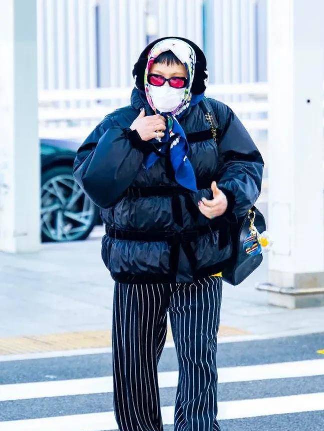 只见他身披一件黑色羽绒服,内搭马甲外套,粉色的眼镜与口罩遮面,却难掩其独特的明星气场。值得一提的是,丝巾作为他近年钟爱的配饰,此次再次玩出新花样——不仅作为颈间点缀,更是化身个性头巾,巧妙束起。