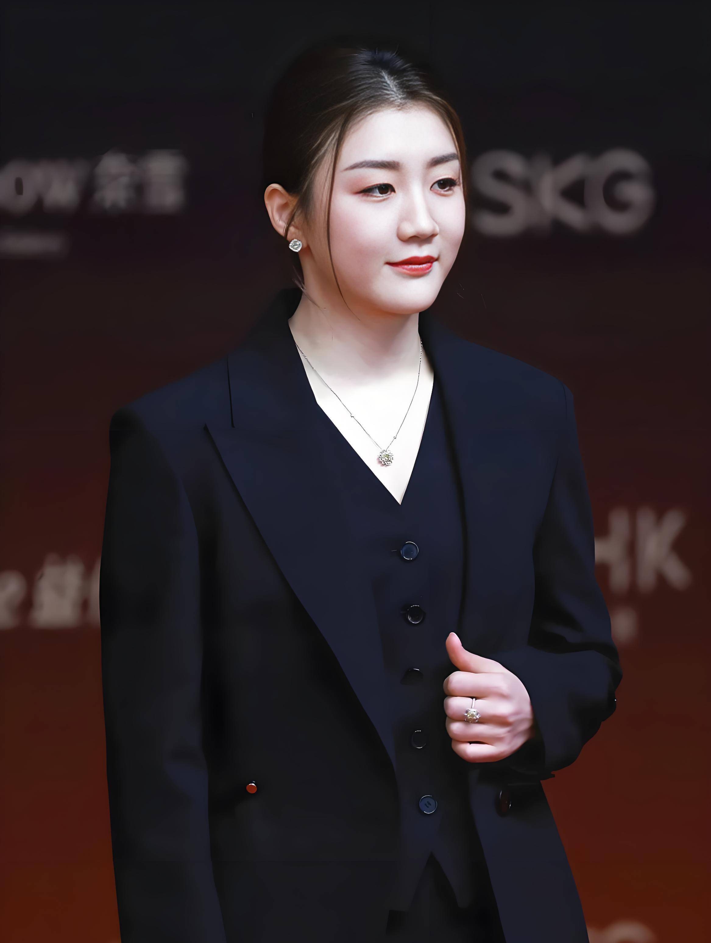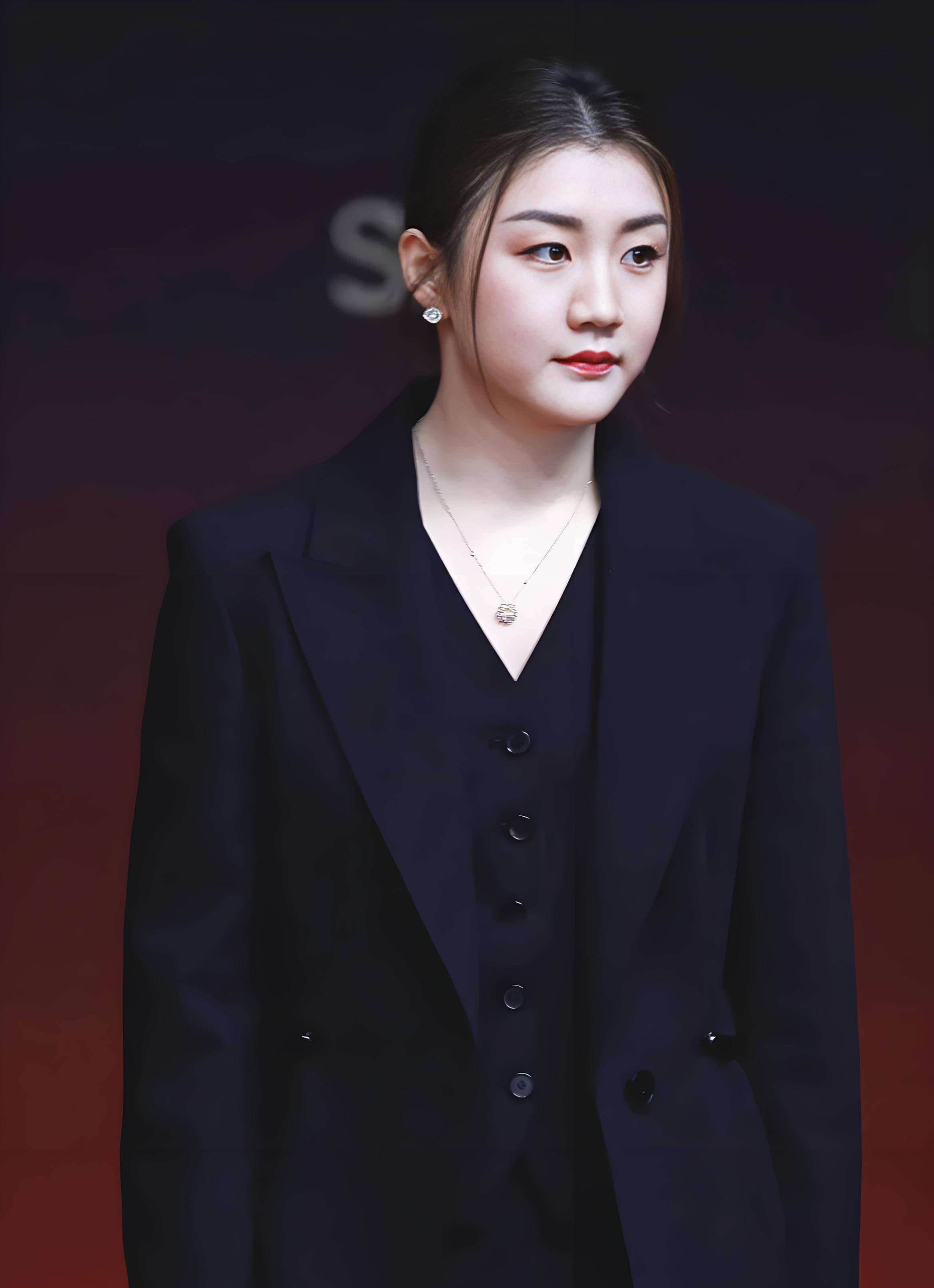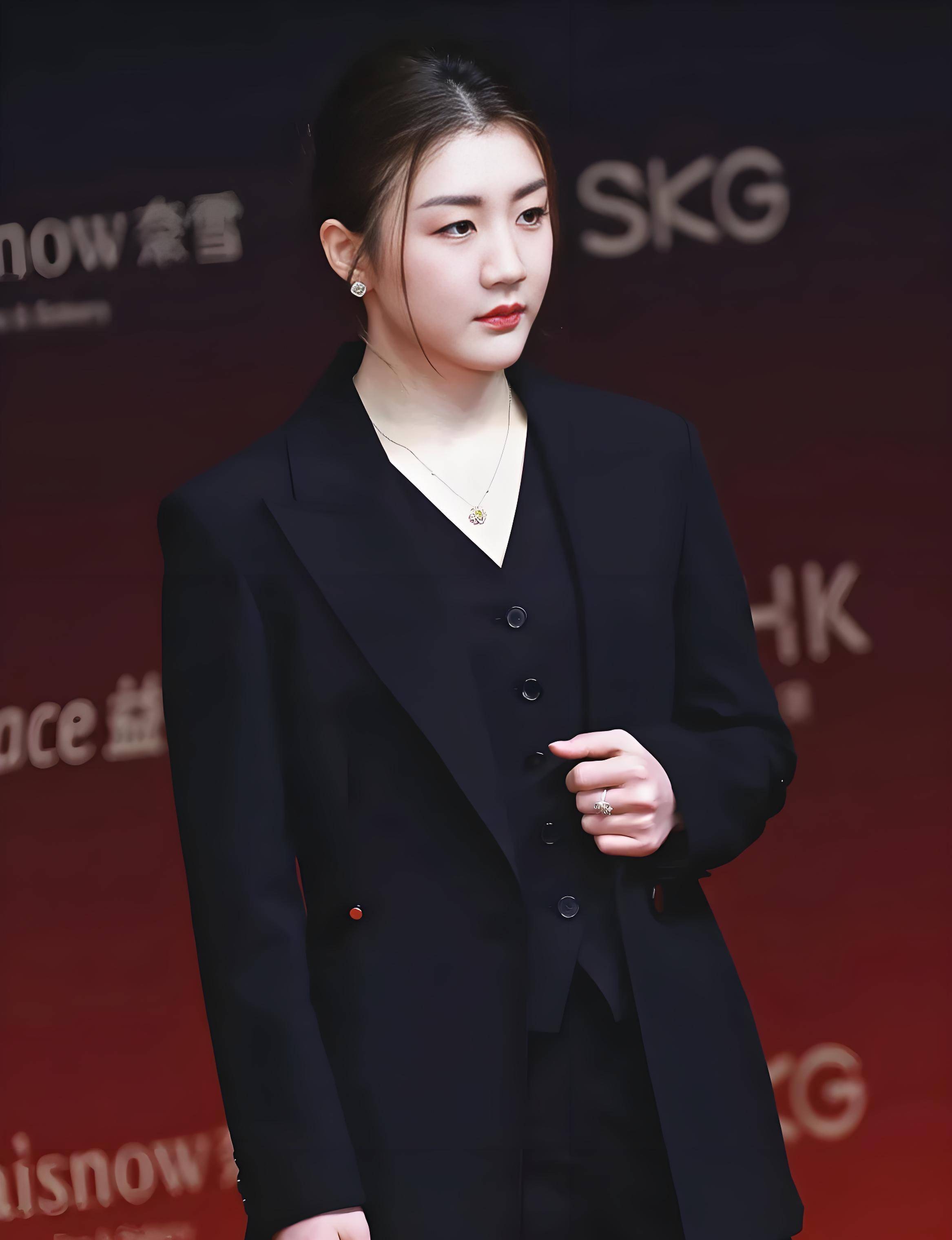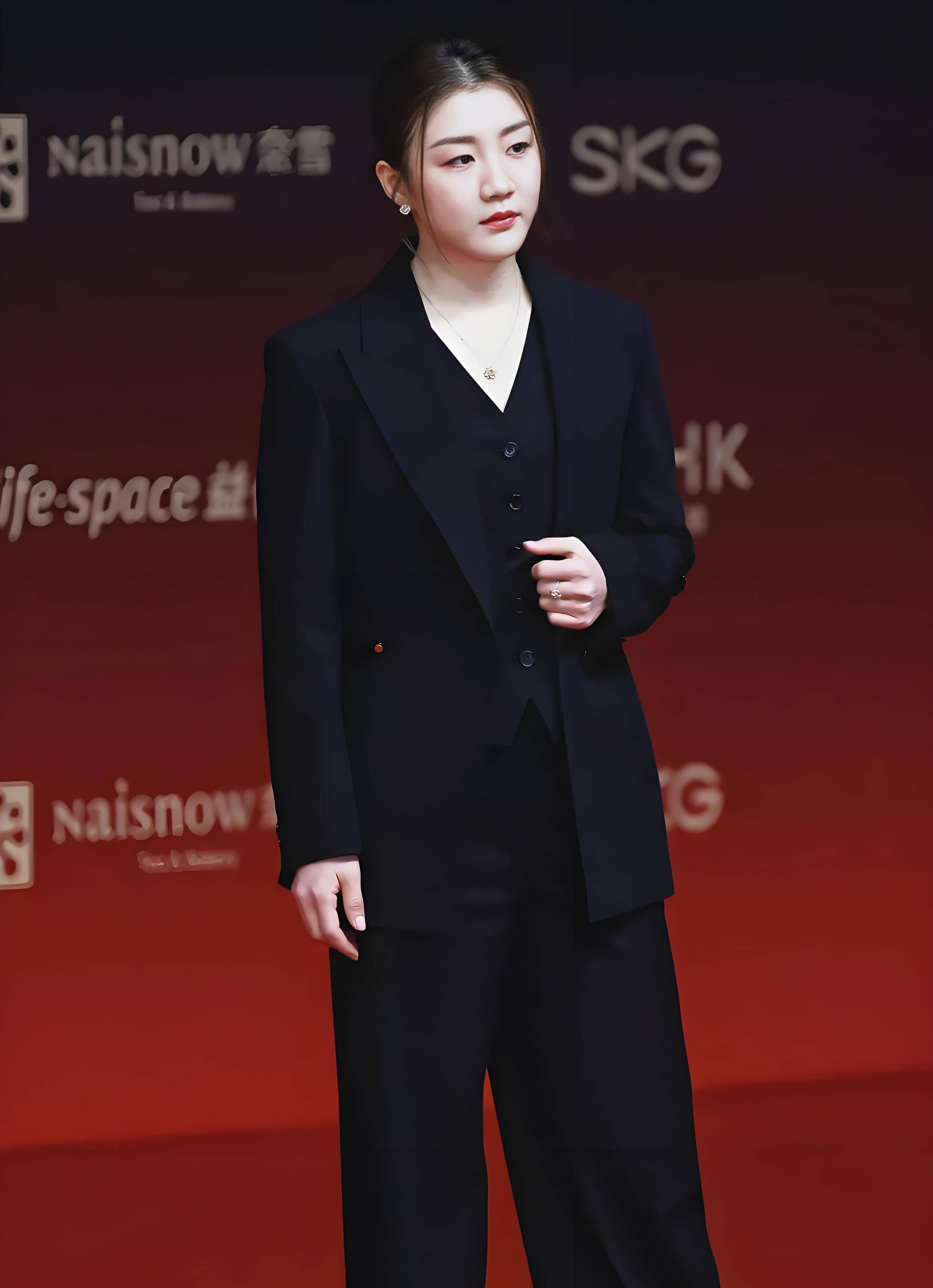 身姿挺拔如松,眼神坚定如炬——那熟悉的赛场锋芒犹在,却平添了几分从容与时尚气息。她宛如从商业封面上信步走来的女总裁,自带一股不怒自威的气场。