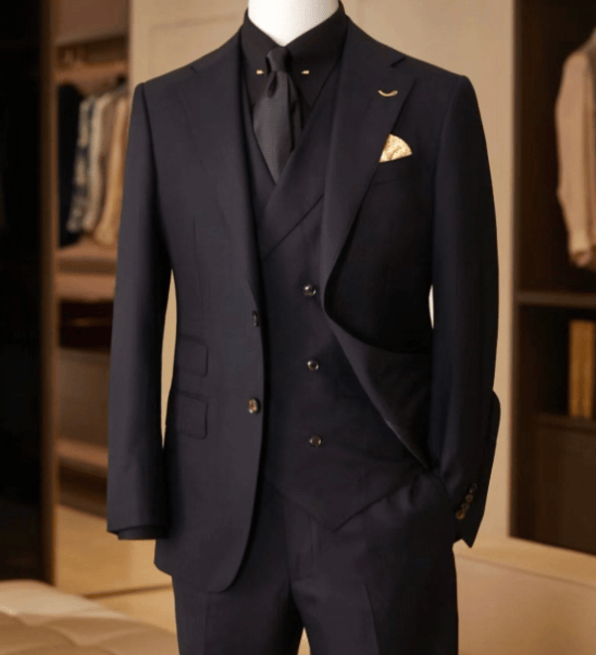 如今,西装已形成丰富多元的分类体系。按穿着者可分为男、女、童西装。按场合可分为礼服(如晨礼服、小礼服、燕尾服)与便服(日常正装)。按件数则有单件西装(休闲便装)、两件套(上衣+裤)和三件套(上衣+裤+背心),其中三件套被认为最为正式。按上衣纽扣排列,分为单排扣(常见一至三粒扣)和双排扣(常见两、四、六粒扣)。按后开衩方式,则有单开衩、双开衩和不开衩之别。
