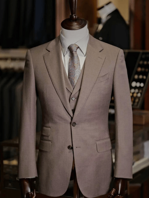 2. 衣领处理:高品质西装的衣领依托内衬的自然弧度翻折过来,线条柔和灵动,而非通过熨烫压出僵硬的死折。