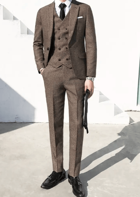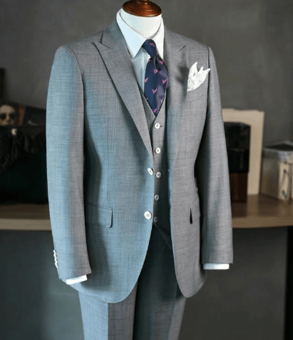 ● 英版西装:欧版变种,多为单排三粒扣,领子较狭长,轮廓同样为倒梯形,契合盎格鲁-萨克逊人的体貌特征。