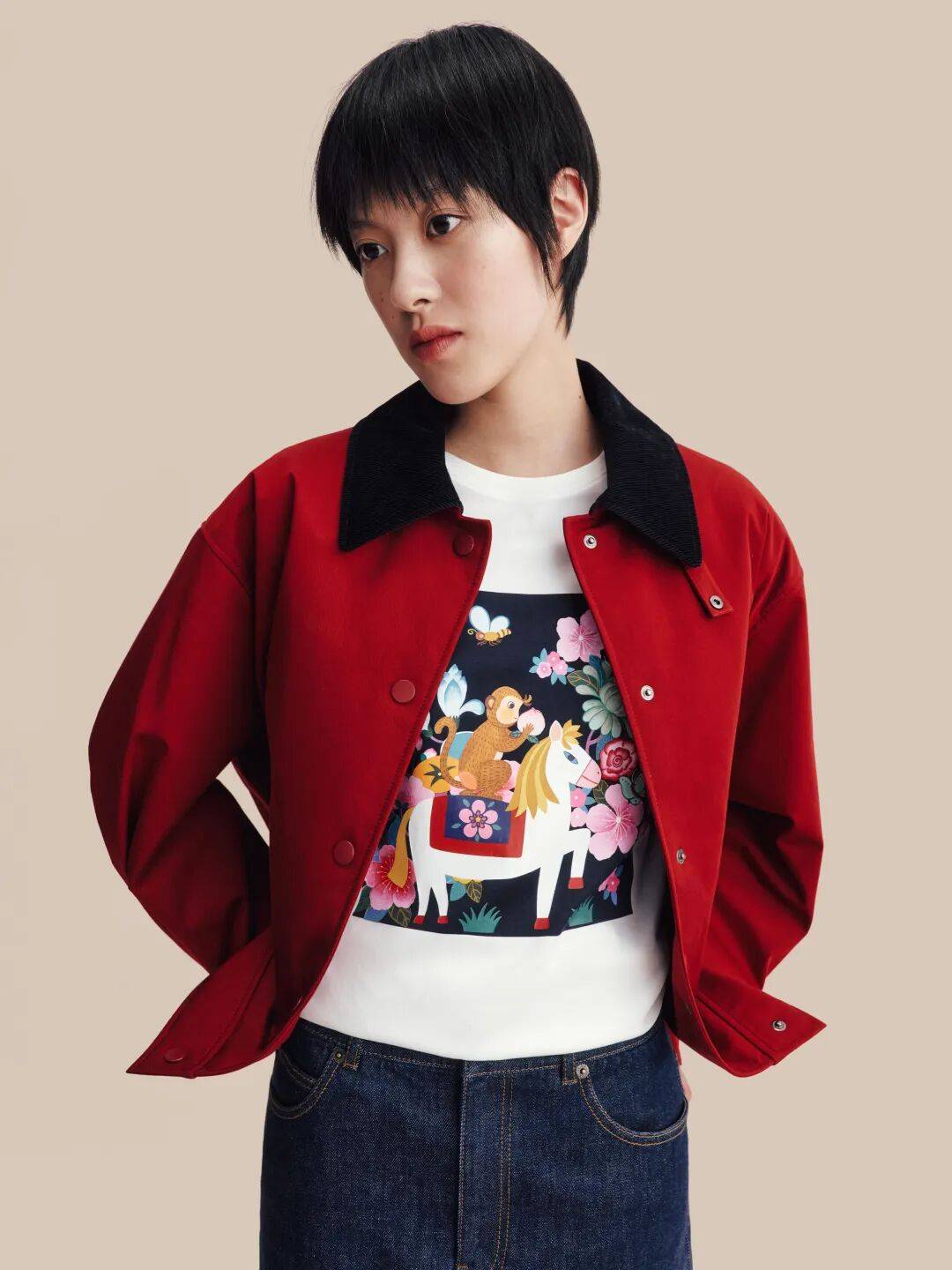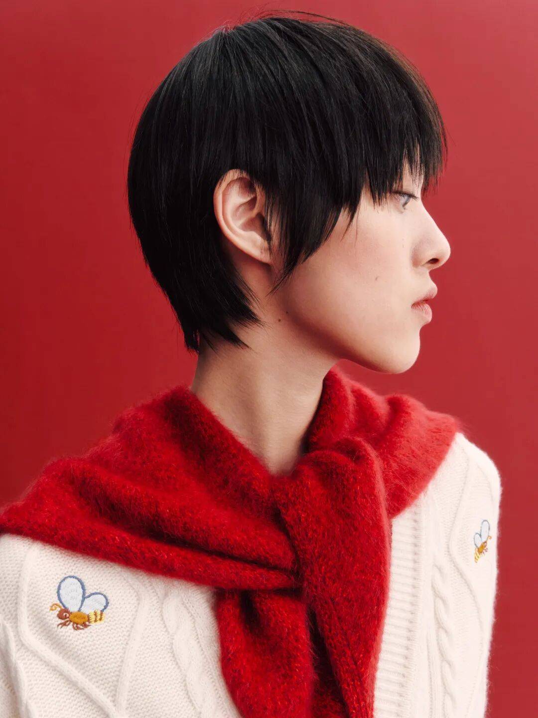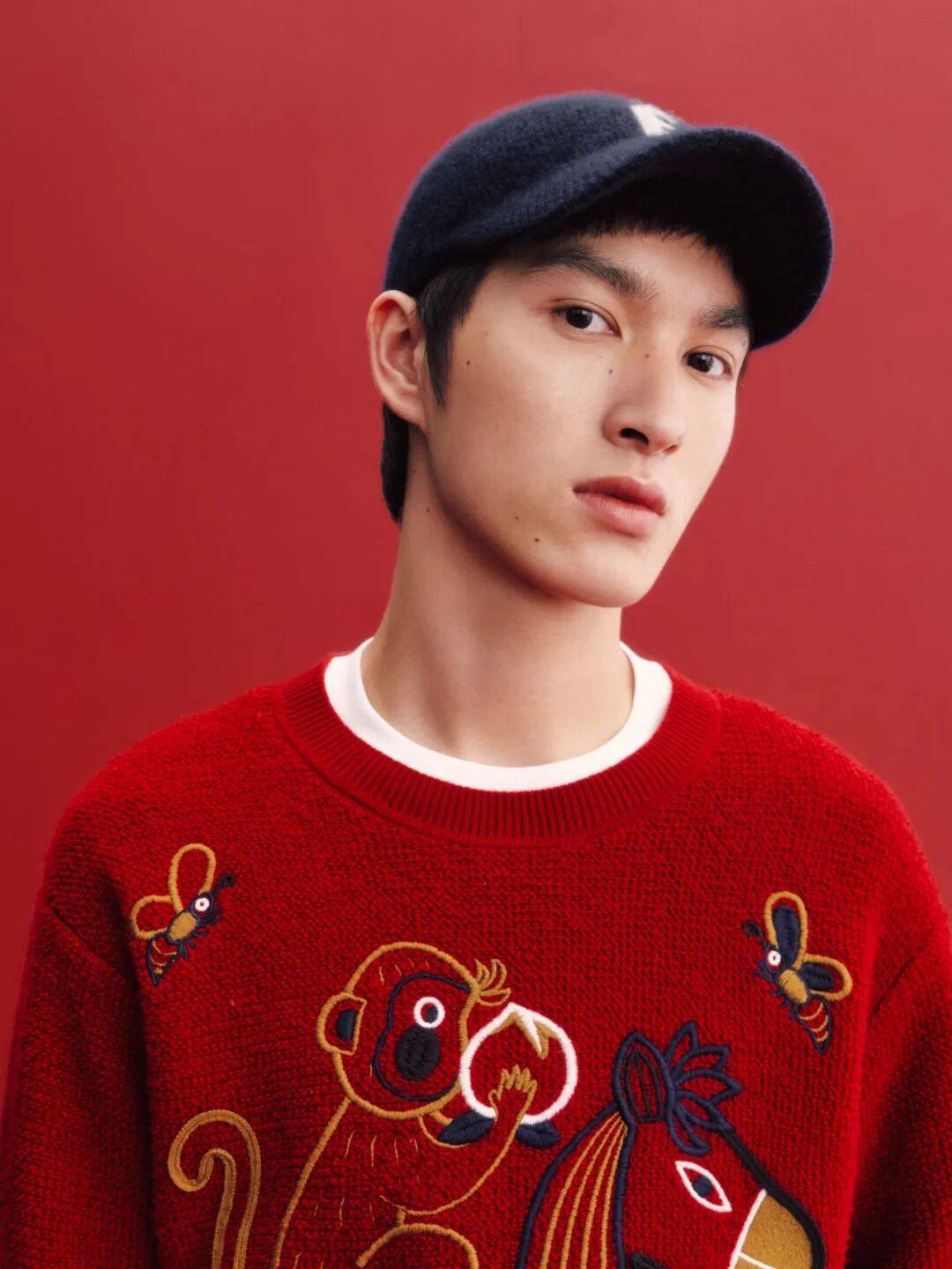 聚焦于设计与材质。色盘以正红为主调,铺陈浓郁节庆意境;灯芯绒针织布与棉质毛圈为织物赋予丰富肌理与亲肤质感;条纹灵感取自蜂纹,红白相间的线性语言跃动其间,寄托对新年的轻盈憧憬……