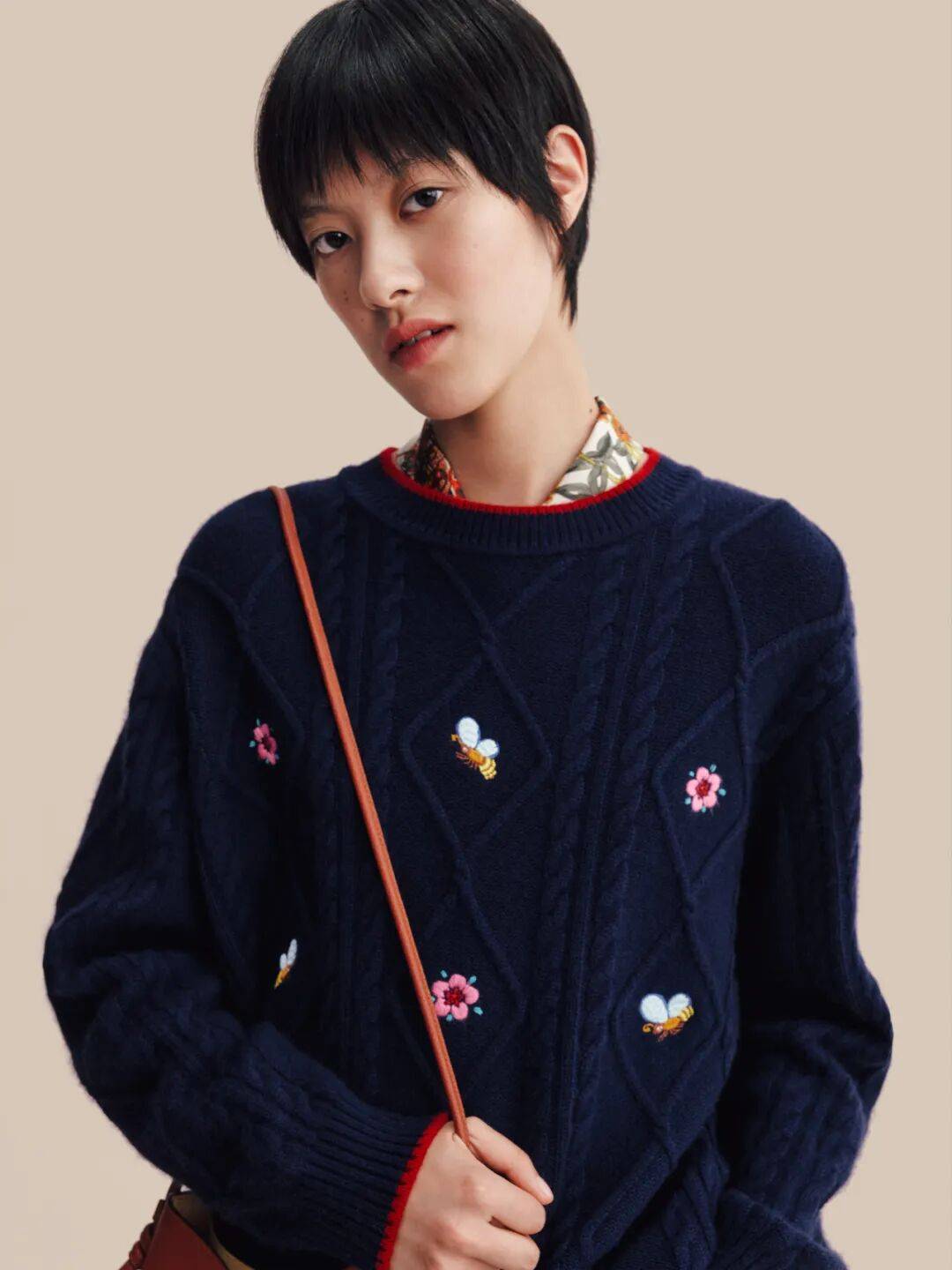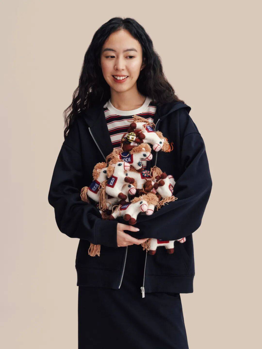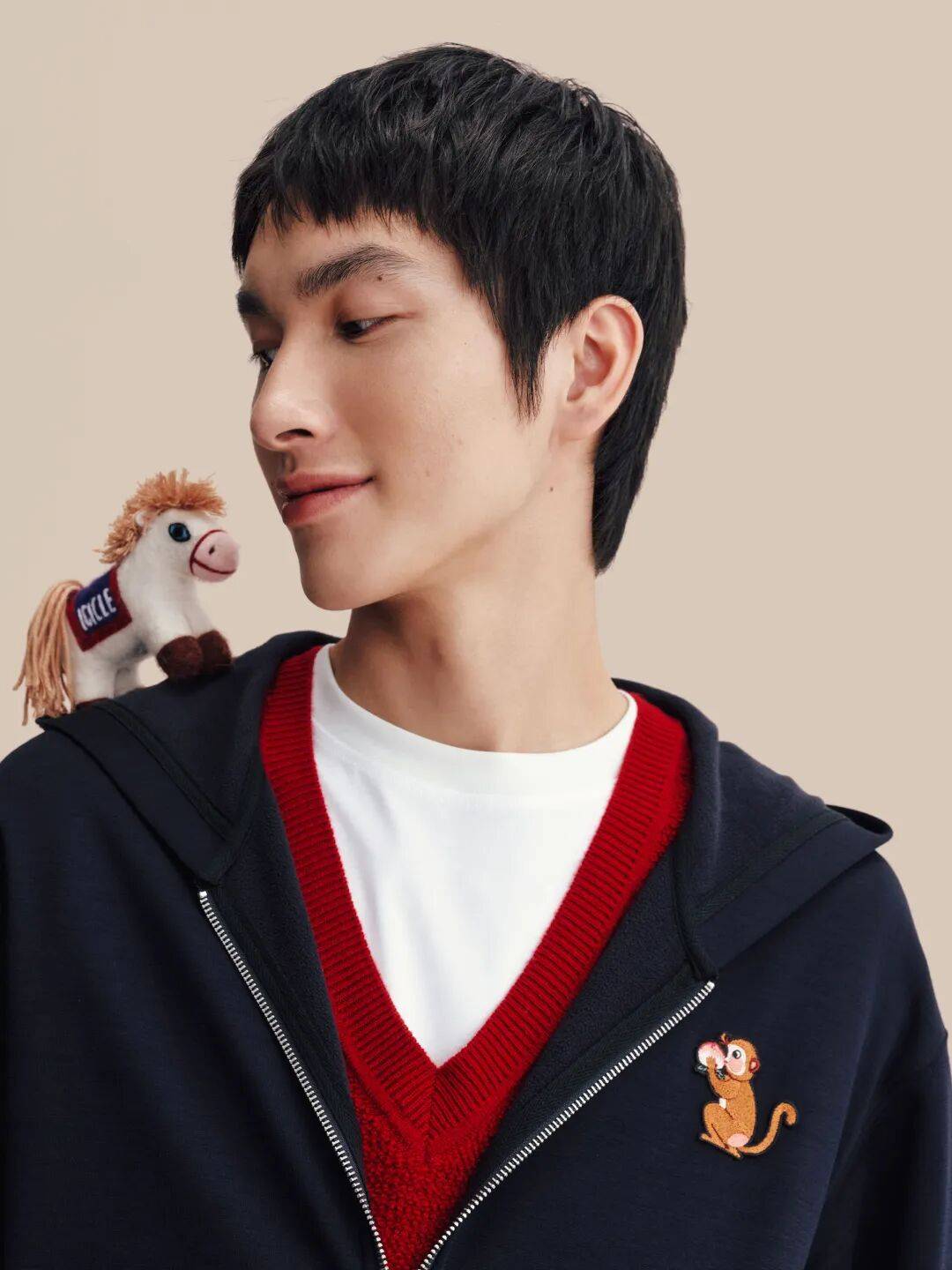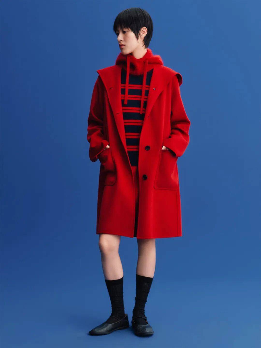 聚焦于设计与材质。色盘以正红为主调,铺陈浓郁节庆意境;灯芯绒针织布与棉质毛圈为织物赋予丰富肌理与亲肤质感;条纹灵感取自蜂纹,红白相间的线性语言跃动其间,寄托对新年的轻盈憧憬……