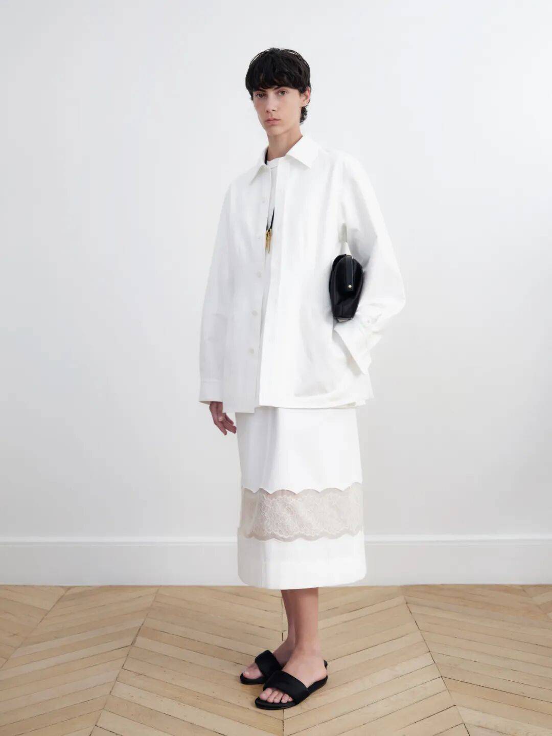 延续品牌语汇与标识,Esperanto廓形重塑为外套,以风衣、军工夹克与针织的形式呈现;睡衣融入日装,内里设计外化;云朵般的填棉,覆以真丝缎面;垂坠的真丝电力纺裁作连衣裙与上衣……