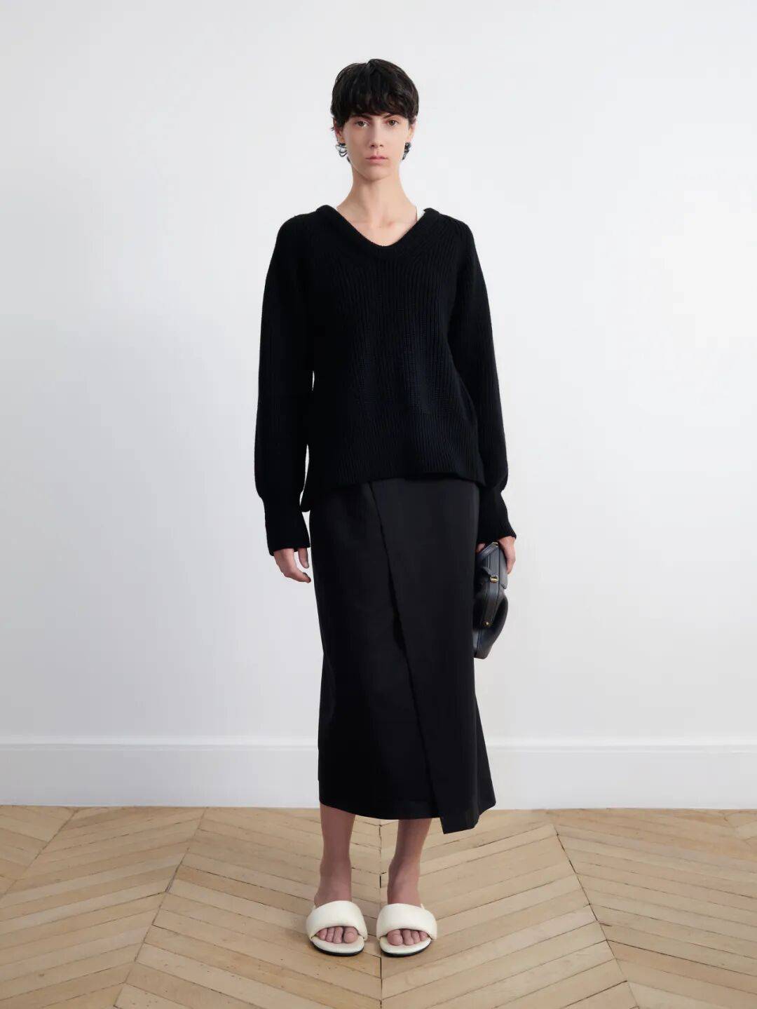 ARIELLA高跟鞋与袜靴延续了品牌经典的 “美人尖” 廓形,充满雕塑感的酒杯鞋跟更为斜纹软呢、丝绒和纳帕皮的温柔质感注入摩登基因。