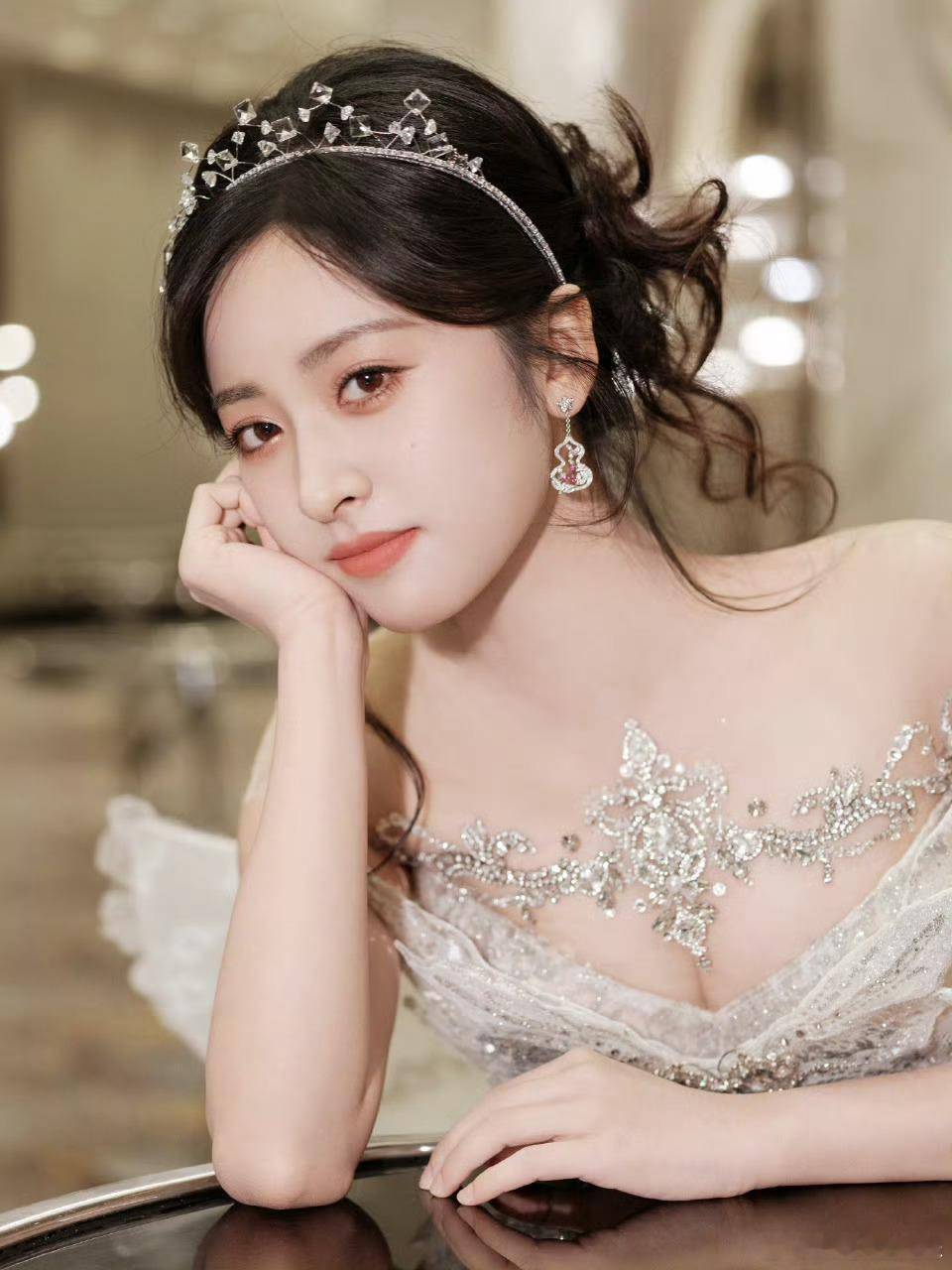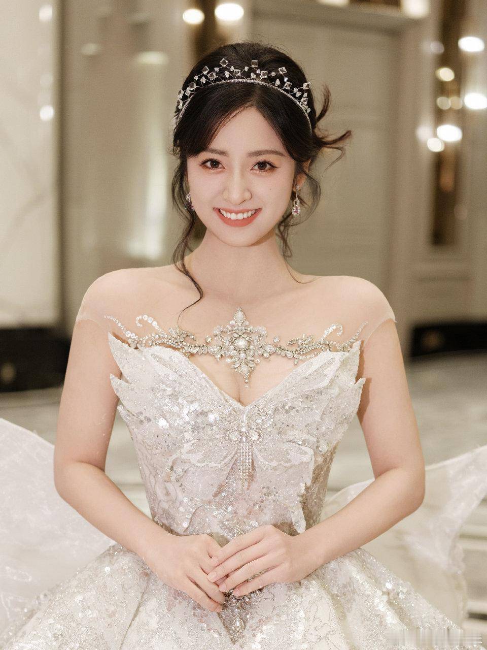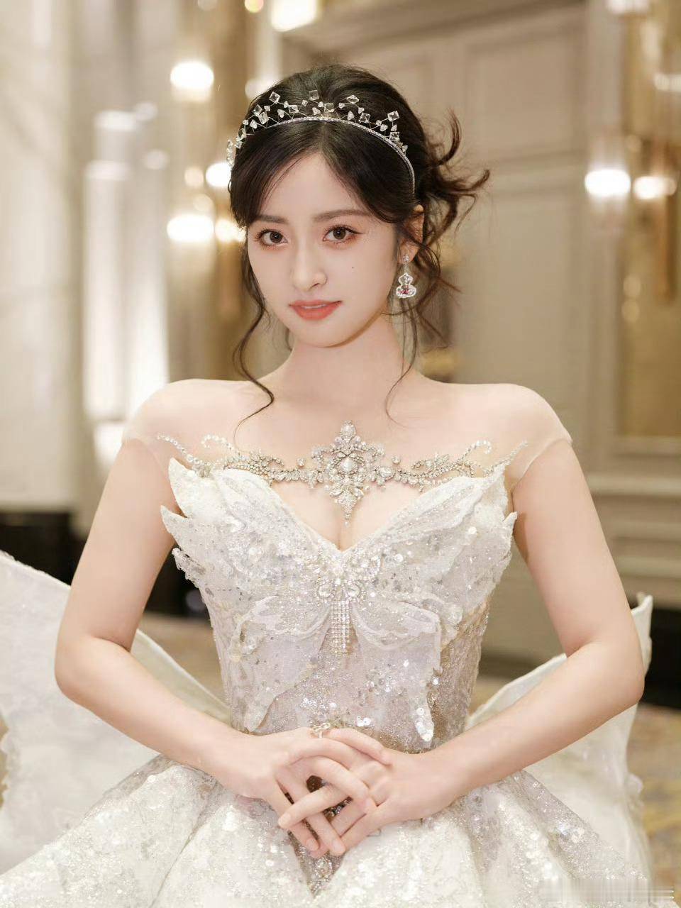 在配饰的选择上,沈月也秉持了“少即是多”的原则。小巧的头冠替代了传统繁复的皇冠,更显俏皮;精致的耳坠与项链点缀其间,闪耀却不夺主。妆容方面,清透的底妆搭配粉嫩腮红,眼妆干净柔和,重点突出了她灵动的眼眸和饱满的唇形,整体妆造与礼服风格高度统一,共同强化了这种精致又不失少女感的公主风。