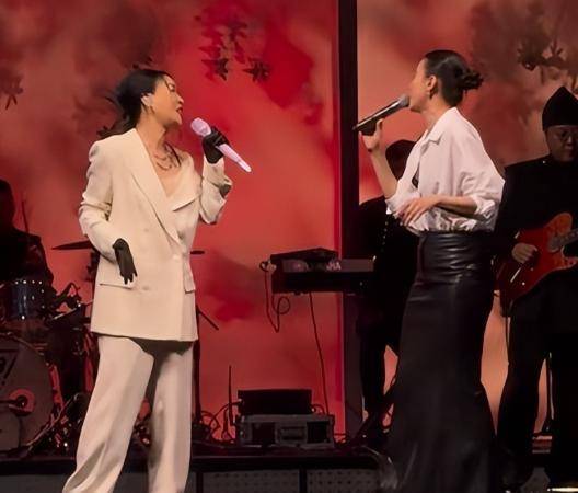 当造型的静态比拼落幕,现场的动态瞬间更显鲜活。那英化身“宴席霸主”,一身白西装,领着乐队便即兴开唱。一曲《一笑而过》瞬间点燃空气,她随手拉起宋佳默契合唱,将高雅晚宴变成了酣畅淋漓的KTV。57岁的她,低胸装下是端庄,歌声里是奔腾的生命力,证明活力从来与年龄无关。