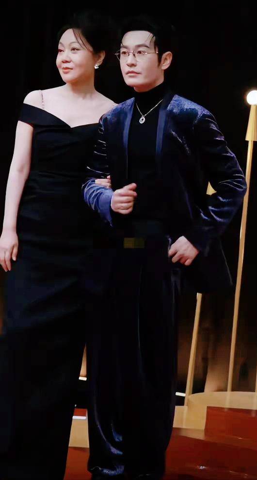 黄晓明和闫妮这对搭档真是让人眼前一亮,他们不时低头交谈,在镜头前表现得十分自然。蓝银色亮面西装,远看有点像未来战衣。配上黑色高领毛衫,金项链、金边眼镜一套组合拳打下来,挺亮眼。关键是脸,没以前那种油润感了,清爽了不少。