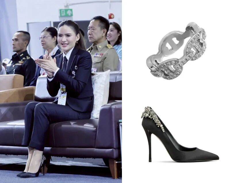以及戴爱马仕白金戒指,搭配Roger Vivier高跟鞋,全身行头大几十万~