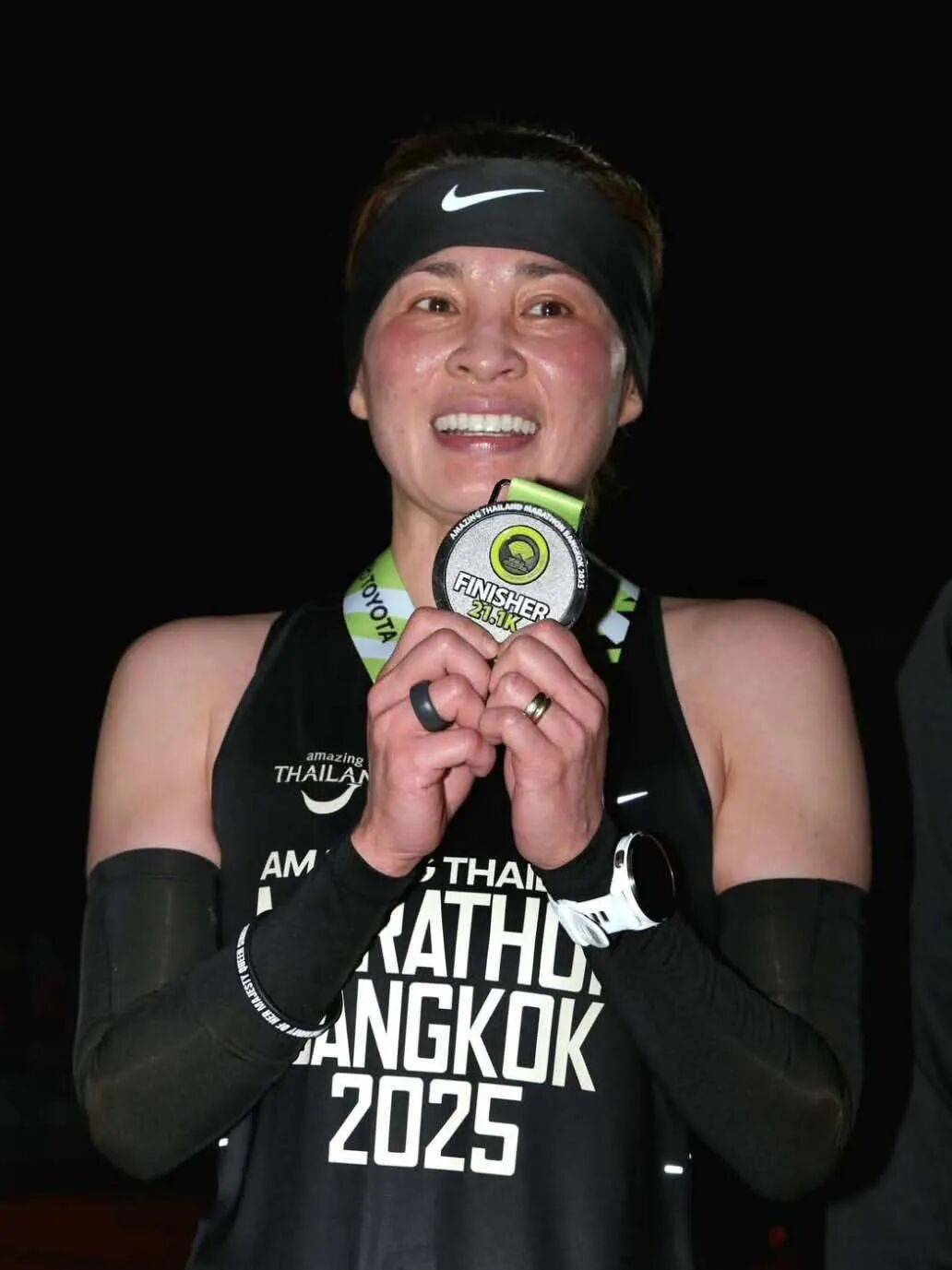 尤其是,苏提达跑马拉松时选择了全素颜示人,照片甚至连美颜都没开,真实又健康,松弛感拉满的状态,瞬间在社交媒体上圈粉无数——也间接证明了她的“后位稳固”。