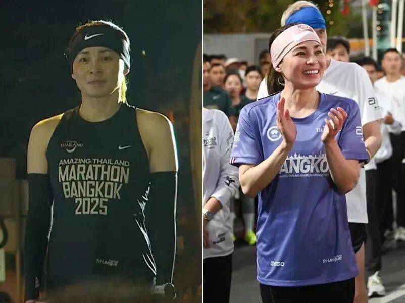 最近参加马拉松比赛,苏提达甚至连底妆都没有化,被拍到满头大汗的跑步照,大方自信地加入运动中。