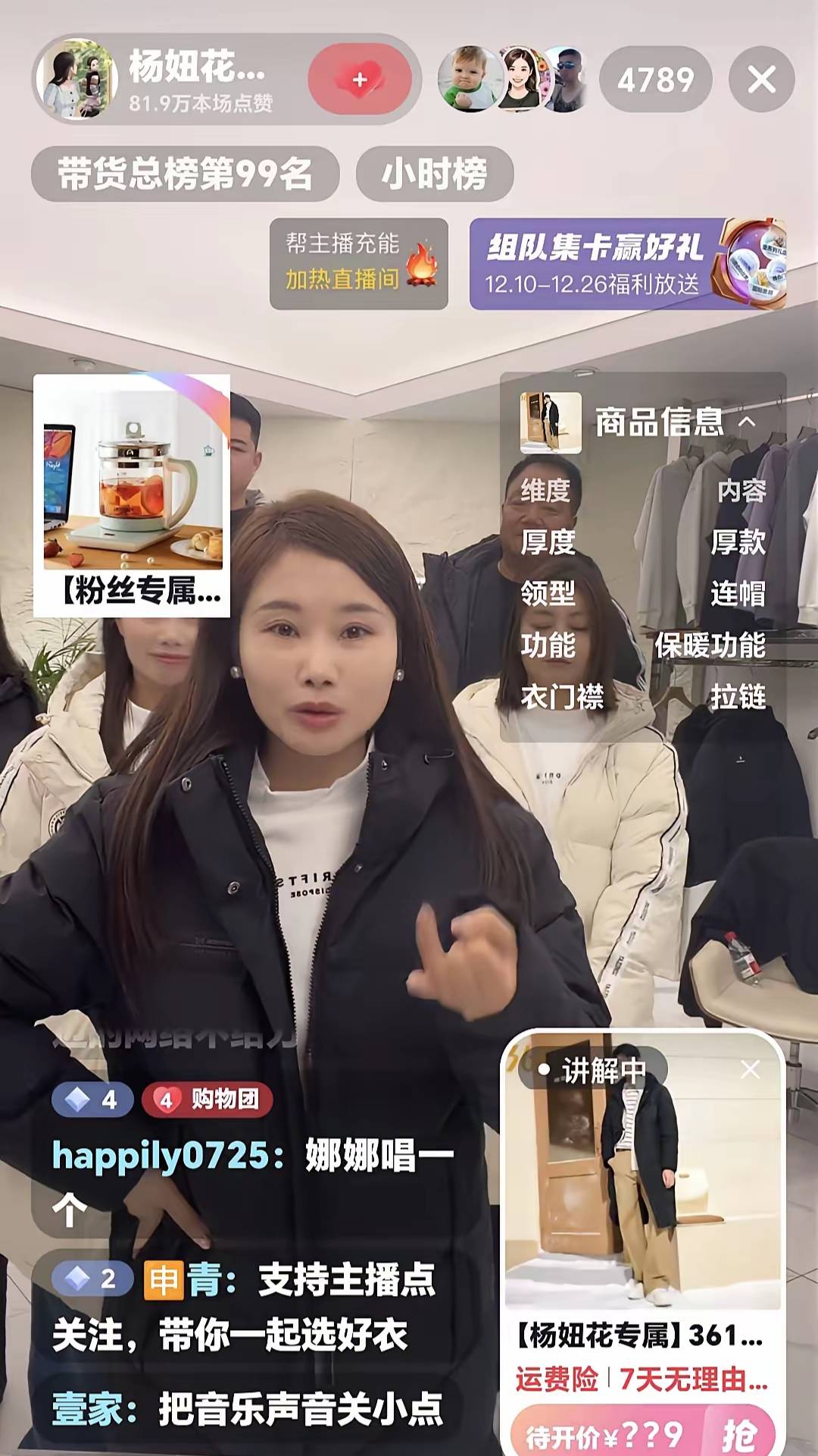 12月16日,咱们看到一个有趣的画面——杨妞花的直播带货现场。曾经因为寻亲打拐的故事迅速蹿红,直播间峰值观看人数曾突破20万的她,现在在卖冬季衣服时,直播间的在线人数仅剩下5000多人,弹幕也冷冷清清,几乎没有人下单。 当她和姐姐桑英以及家人们努力在镜头前推销时,看到几乎没有人买账,许多网友不禁调侃:看来她彻底凉了,就让她们一家人自娱自乐吧!为了让没有关注过这件事的朋友了解,咱们先理一理杨妞花的过去。杨妞花之所以走红,是因为她有一个令人心疼的经历:她五岁时被人贩子余华英拐卖,经过26年的颠沛流离,寻亲9年终于找回了她的姐姐桑英,并且亲手将人贩子送上了死刑台。