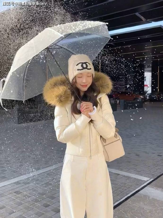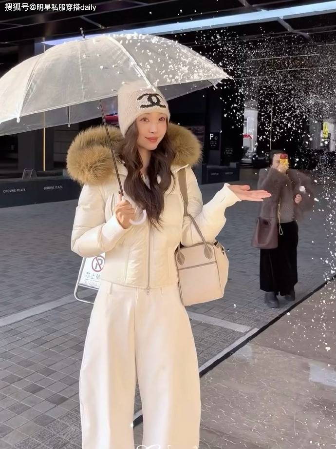 look1:白色短款羽绒服+白色弯刀裤短款羽绒服对身材包容性好,易梦玲选择的这款短款羽绒服,腰部设计刚好卡在腰线位置,视觉上拉高腰线还显腿长,不管是搭配高腰裤、裙都能完美适配,像易梦玲搭配弯刀裤,还能摒弃冬天日常穿搭的厚重感,保暖显高又好看!