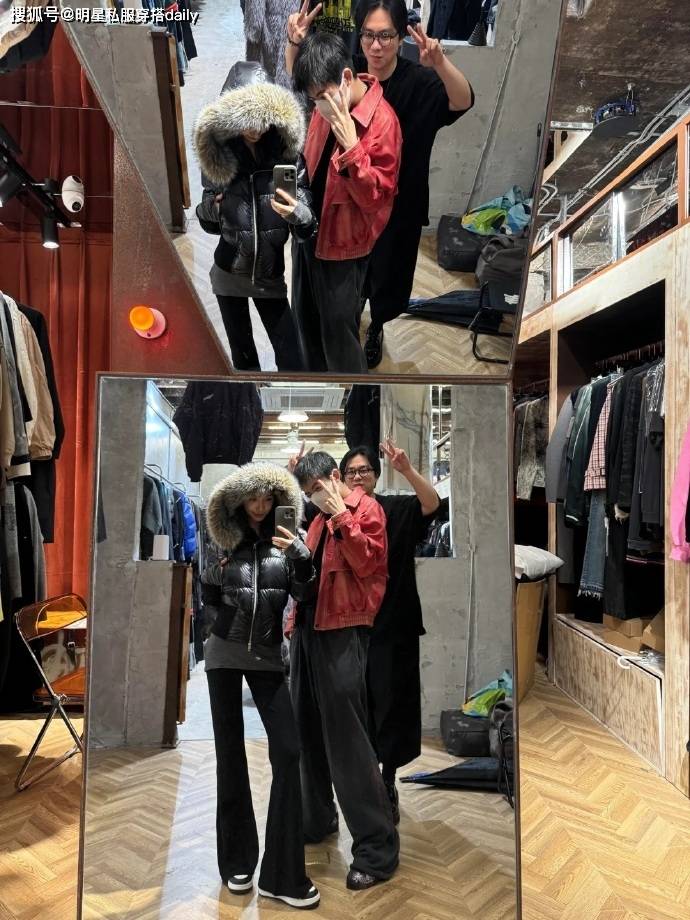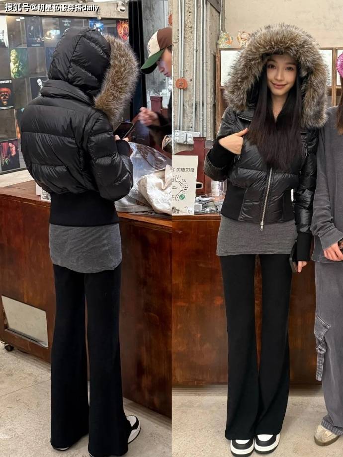秋冬穿搭也尽可以沉稳松弛,易梦玲身穿黑色短款毛领羽绒服,下装选黑色瑜伽微喇裤,经典的黑白配永远不出错,毛领的设计还增加了贵气感;黑色短款羽绒服搭黑色瑜伽裤,甜酷平衡得刚刚好,约会穿这套,温柔又亮眼。