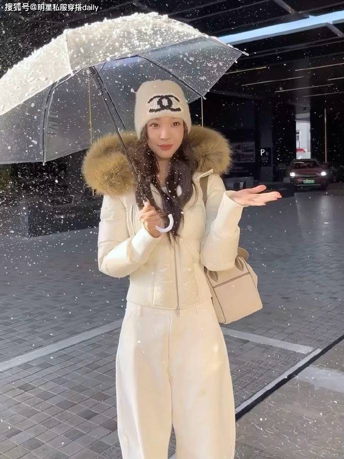 知名网红易梦玲身材是真的好!最近,她晒出自己的撑着透明伞,拍摄雪中美景的穿搭!这位身材高挑,比例优越的美女,把白色羽绒服和长裤穿出高级感!