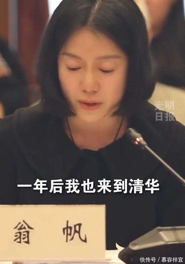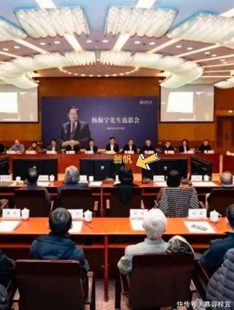 杨振宁的追思会在清华大学举行,杨振宁的遗孀翁帆博士在会上发言,追忆与杨振宁的点滴。翁帆坐在会场的中心位置,她看起来十分年轻,尽管已49岁,脸上几乎看不出皱纹。她笑容温暖,眼角没有岁月的痕迹,尽显她的青春和活力。