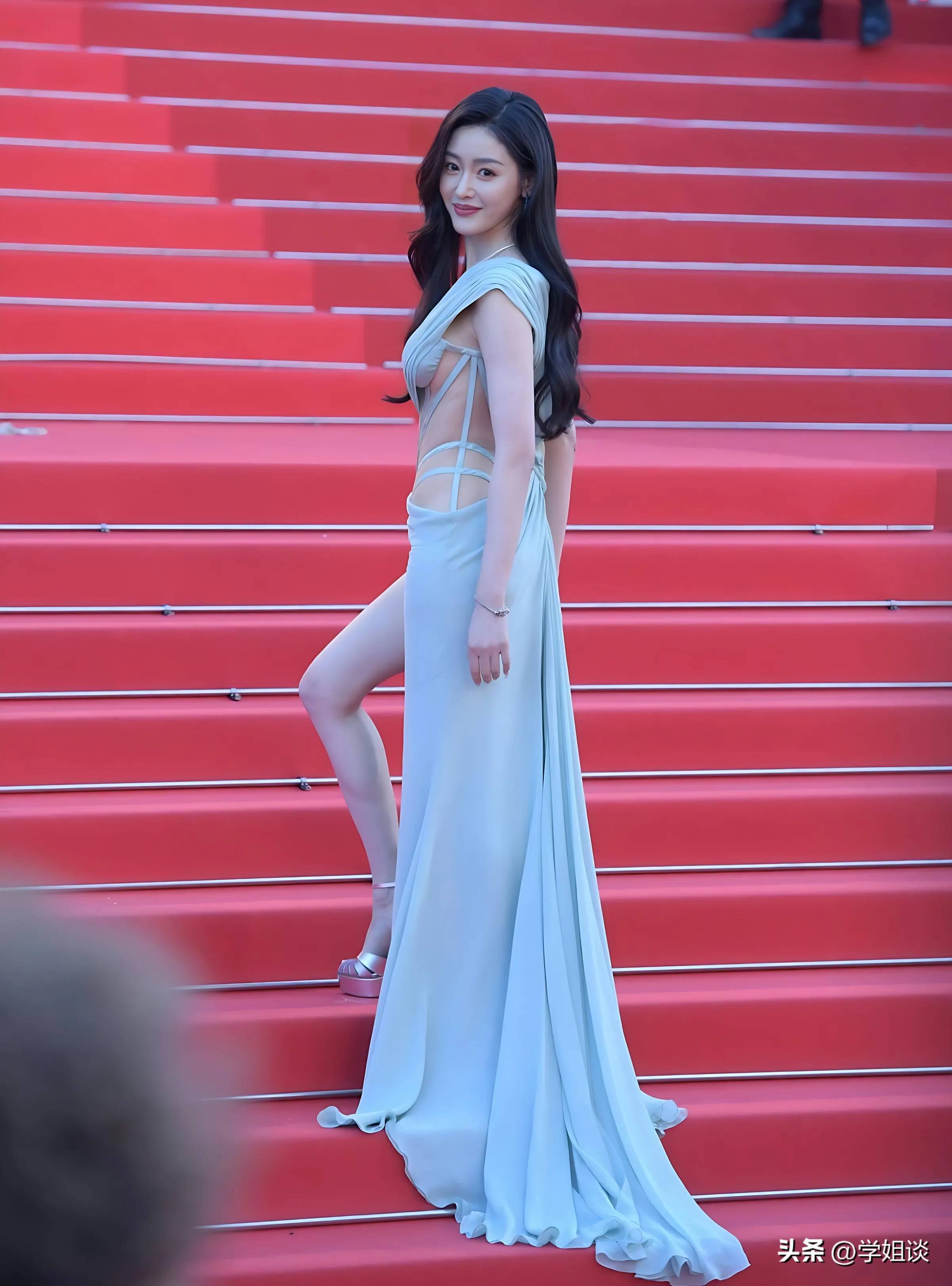 戛纳的红毯从来都是明星们的战场,今年张天爱踏上去的时候,想必也是做足了准备。那一身水蓝色的镂空礼服,像把地中海的波纹穿在了身上,露腰和高开叉的设计,让她走起路来仿佛带着风,皮肤白得发光,身材曲线一览无余。照片一出来,好多人都看直了眼,心里嘀咕着:这哪是走红毯,这分明是美人鱼上了岸!