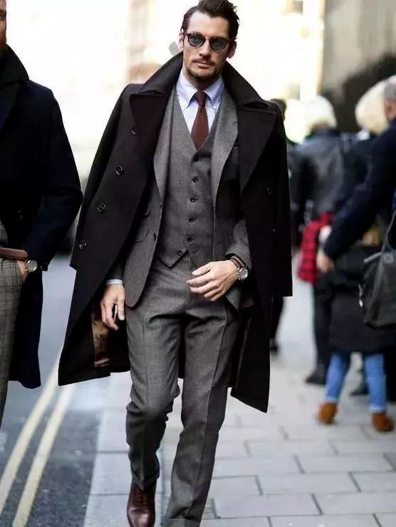 于商务人士来说,冬天的外套,大衣是你唯一的选择! 大衣能让你在不同温度环境下有较好的适应性。室外很冷时,以长大衣外套挡风御寒,配西装三件套,辅以围巾、手套;室内温暖的地方可以脱下大衣只穿西装,暖气充足的话,甚至可以只穿衬衫马甲,这是层叠穿法的便利之处。大衣三个重点:长度、扣位、面料,这三点直接影响了衣服的保暖性。