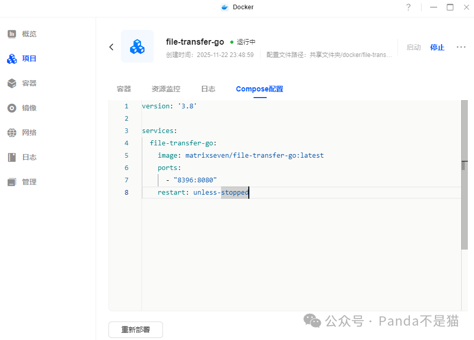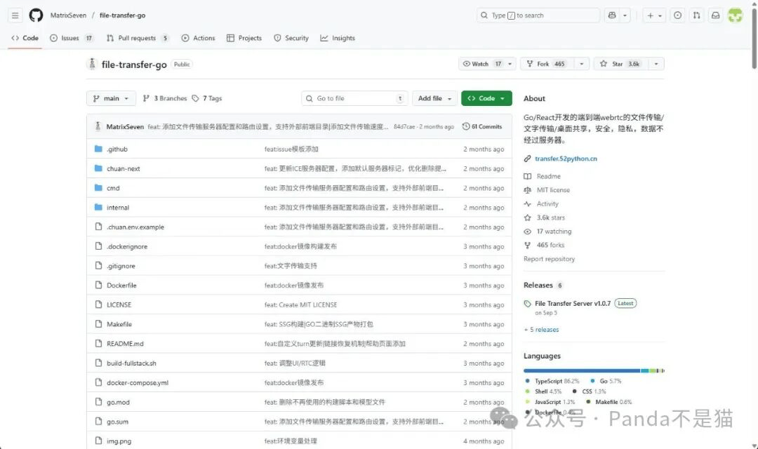展开全文 项目部署这项目部署非常简单。镜像名是 matrixseven/file-transfer-go ,你既可以直接拉取镜像,然后映射 8080 端口来部署,也能用 compose 进行部署。整个过程不涉及任何变量,也不用文件映射。