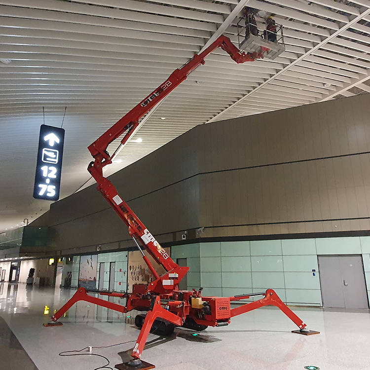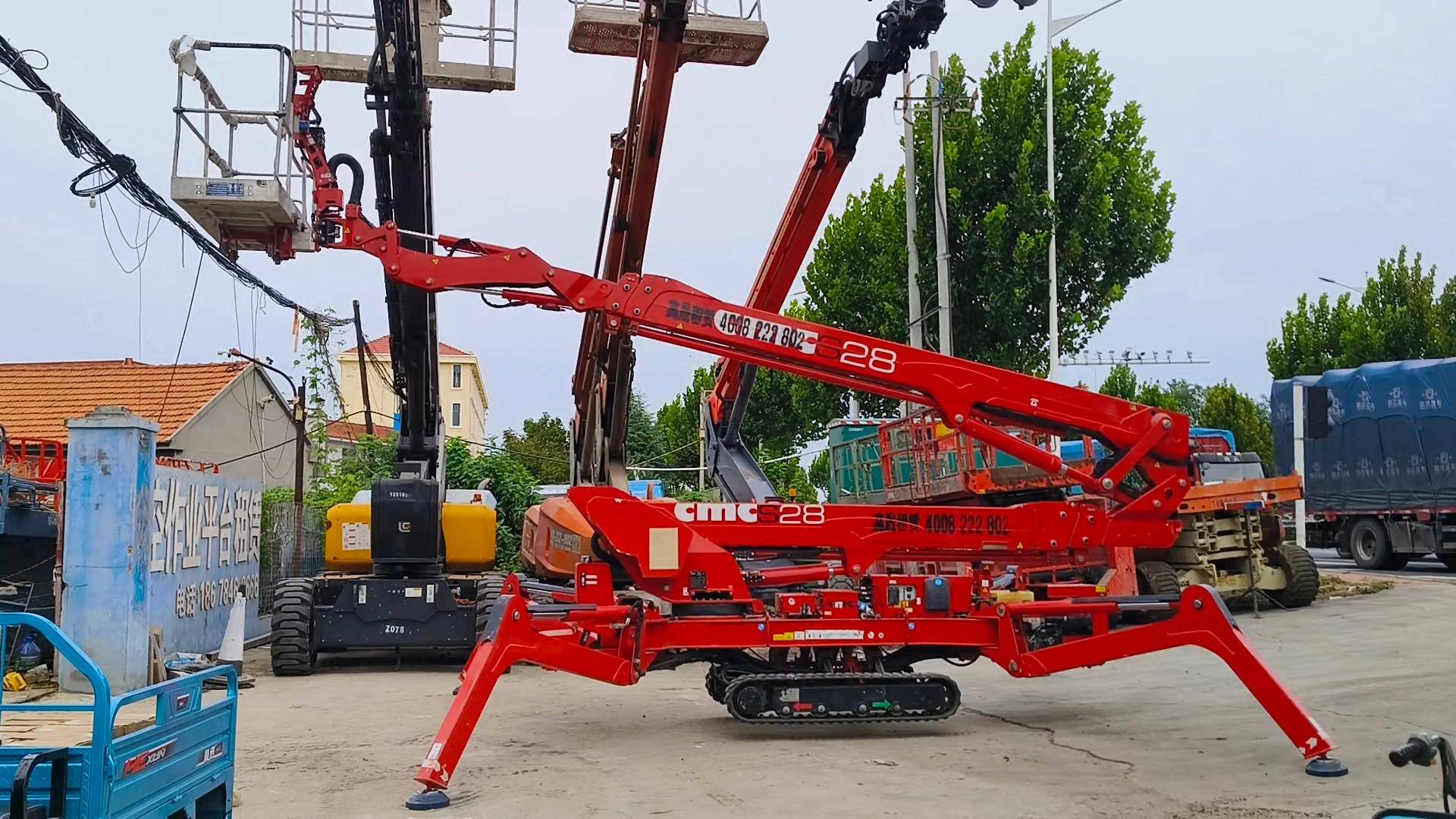履带蜘蛛车是一种集履带式底盘与蜘蛛式臂架于一体的特种高空作业设备,其核心优势在于**超强地形适应能力**与**灵活作业范围**。与传统高空作业车相比,履带蜘蛛车可通过履带底盘在泥泞、沙地、台阶等复杂地形中稳定行驶,无需额外铺设垫板或辅助设备;而其蜘蛛式臂架则支持360度旋转,作业高度覆盖16-38米,可深入建筑内部、桥梁底部或狭窄空间进行精准操作。这种“地面+空中”的双维度灵活性,使其成为市政管道检修、高层建筑外墙维护、风电设备安装等场景的**设备。