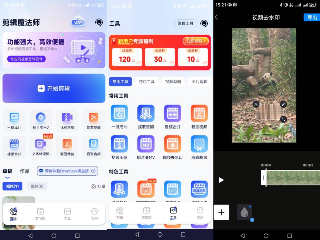 如果说K90自带功能是把瑞士军刀,那“剪辑魔法师APP”就像是一套精密的手术刀。这款软件在去水印方面有着非常细致的划分。它不仅支持常规的框选消除,还拥有强大的“时间轴去水印”功能。什么意思呢?就是针对那种一会儿出现在左上角、一会儿跳到右下角的动态水印,你可以在剪辑魔法师里分段设置消除区域,精准打击。