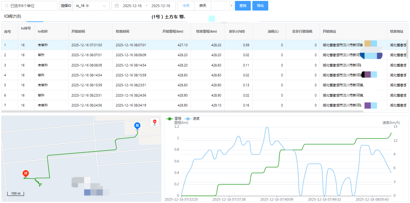 举升监测:记录车斗举升的地点、时长,方便辨别是卸土作业,还是车辆维修。