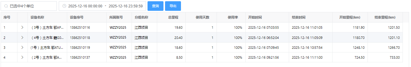 通过定位功能,自动统计每一趟的行驶里程,以及车辆累计行驶里程(数据可导出)