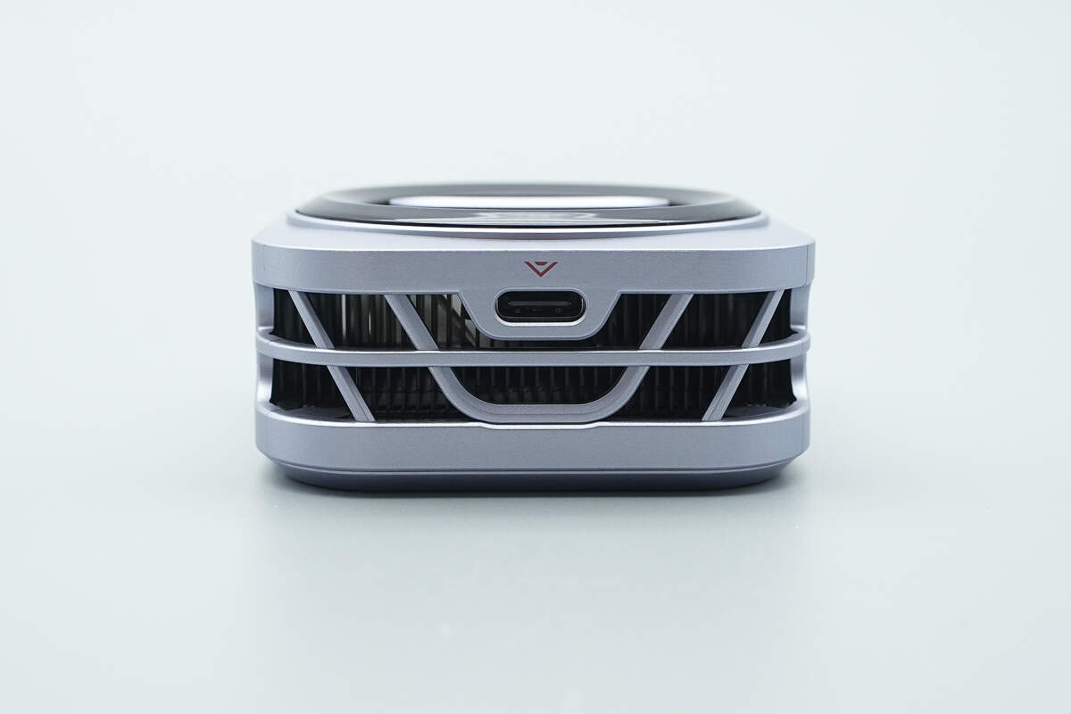 机身一端配置USB-C供电接口,透过外壳还能看见内部散热格栅。