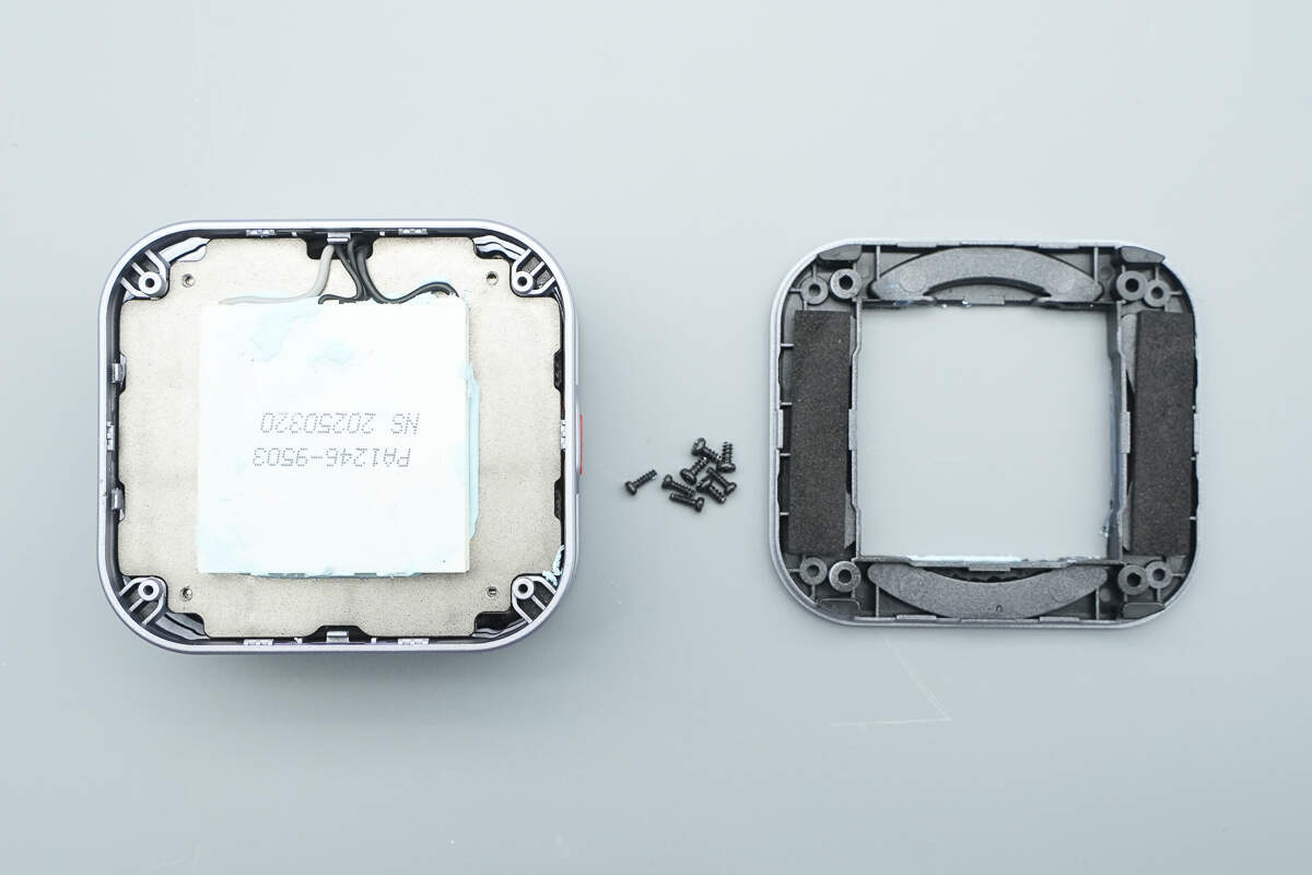 拆掉螺丝取下塑料板,底部两端贴有缓冲保护泡棉。
