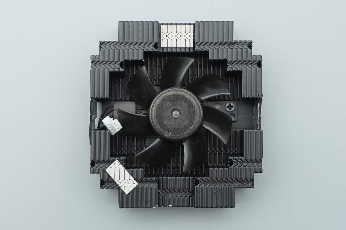 风扇使用螺丝固定在散热片中心位置。