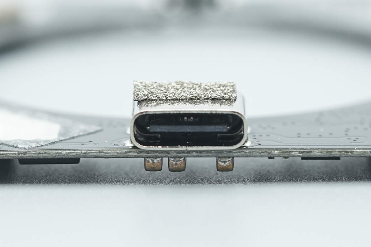 USB-C输入接口特写,外壳上粘贴导电泡棉。