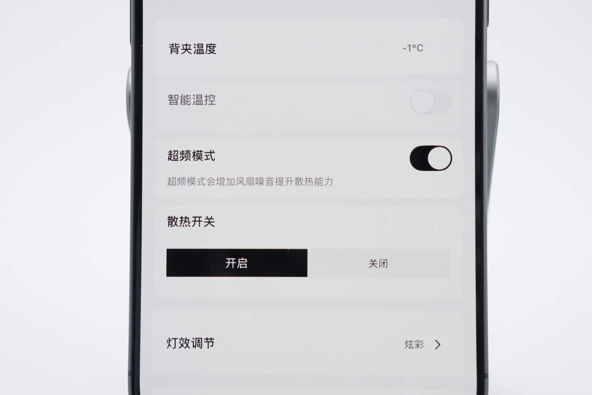 产品还支持用户手机连接“头玩”APP对背夹温度、智能温控、超频模式、散热开关、灯效调节进行灵活自定义,使用相当灵活。