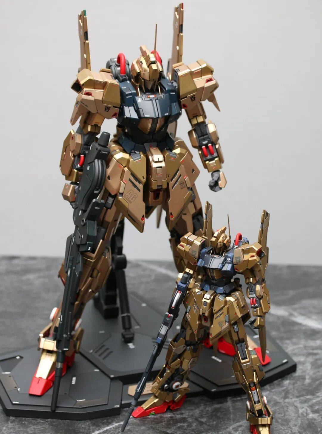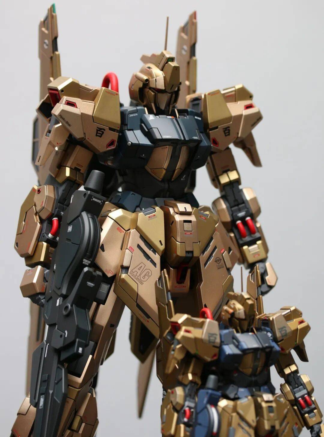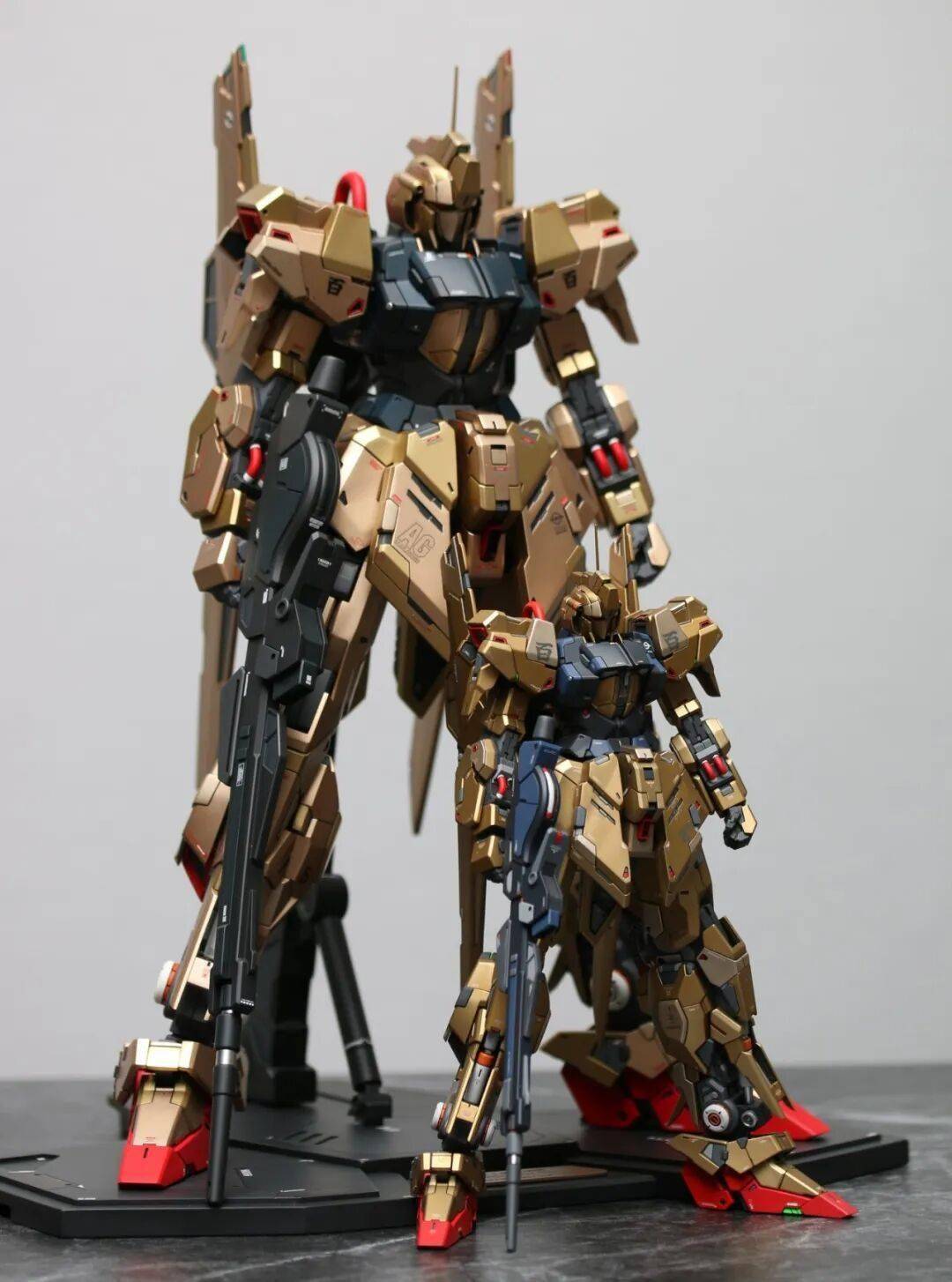 这台1/60的金色百式厉害了!它是由godfinger通过3d打印的方式做出来的套件,然后交给@hong_siljang83来完成整个机体的涂装,它的外甲细节感觉也能媲美PGU了。乍一看你会以为是MG的大小,但是实际上如果把1/100的百式放到它跟前,那就是个弟弟。