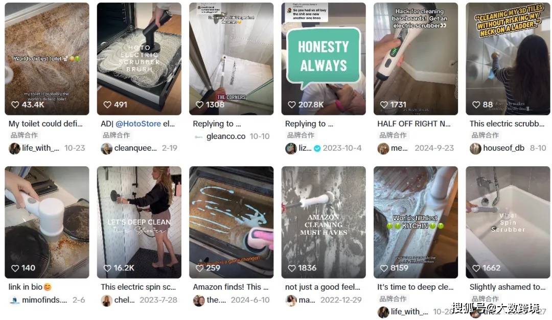 在TikTok上,带有#electric cleaning brush(电动清洁刷)话题标签的作品超1.2万篇,网友不断分享使用不同款式电动洗涤器清洁的内容,有清洁地板、地毯、燃气灶、浴缸、浴室等不同场景,真实使用效果的呈现吸引众多感兴趣用户观看。