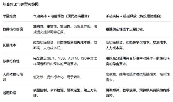 对于将测试数据视为决策依据和法律责任证据的企业(如药企、汽车供应链企业、高端包装制造商),气动夹持与电磁释放不是“可选升级”,而是保证测试方法本身有效性的“必备基础”。它购买的不是功能,而是数据的可信度和过程的权威性。