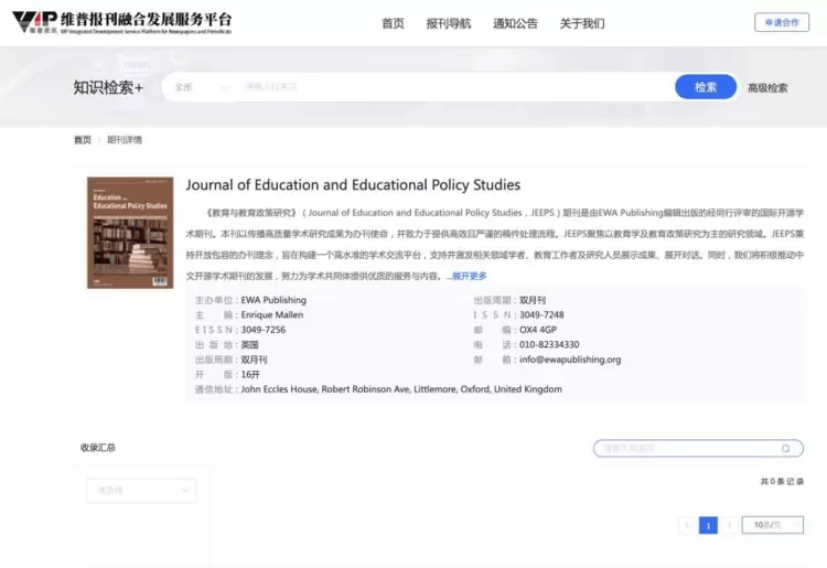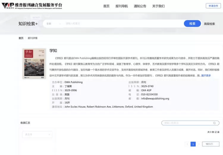 此次16本期刊成功入驻维普数据库,对学术成果的高效传播与价值认定具有关键意义。入驻后,作者发表的论文可通过维普网官网、维普期刊OA出版平台等多渠道便捷检索下载,检索页将清晰呈现期刊信息、文章摘要及作者详情,全方位满足学术成果传播与认定的双重需求。这一突破不仅将吸引更多优质学术稿源汇聚,进一步提升易达威期刊的出版质量与行业话语权,更将推动形成“优质稿源—高质量出版—广泛传播—品牌升级”的良性循环,为推动学术传播事业创新发展注入新活力。