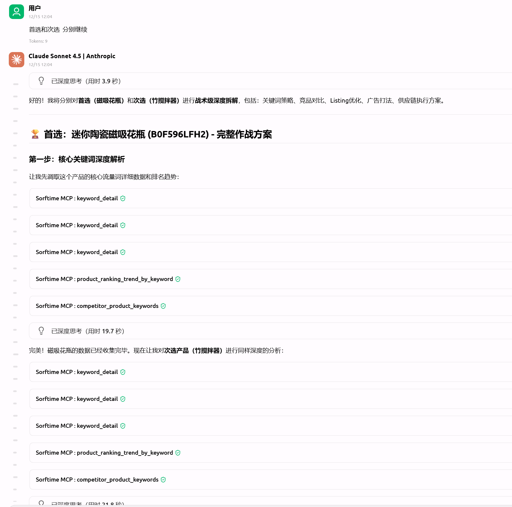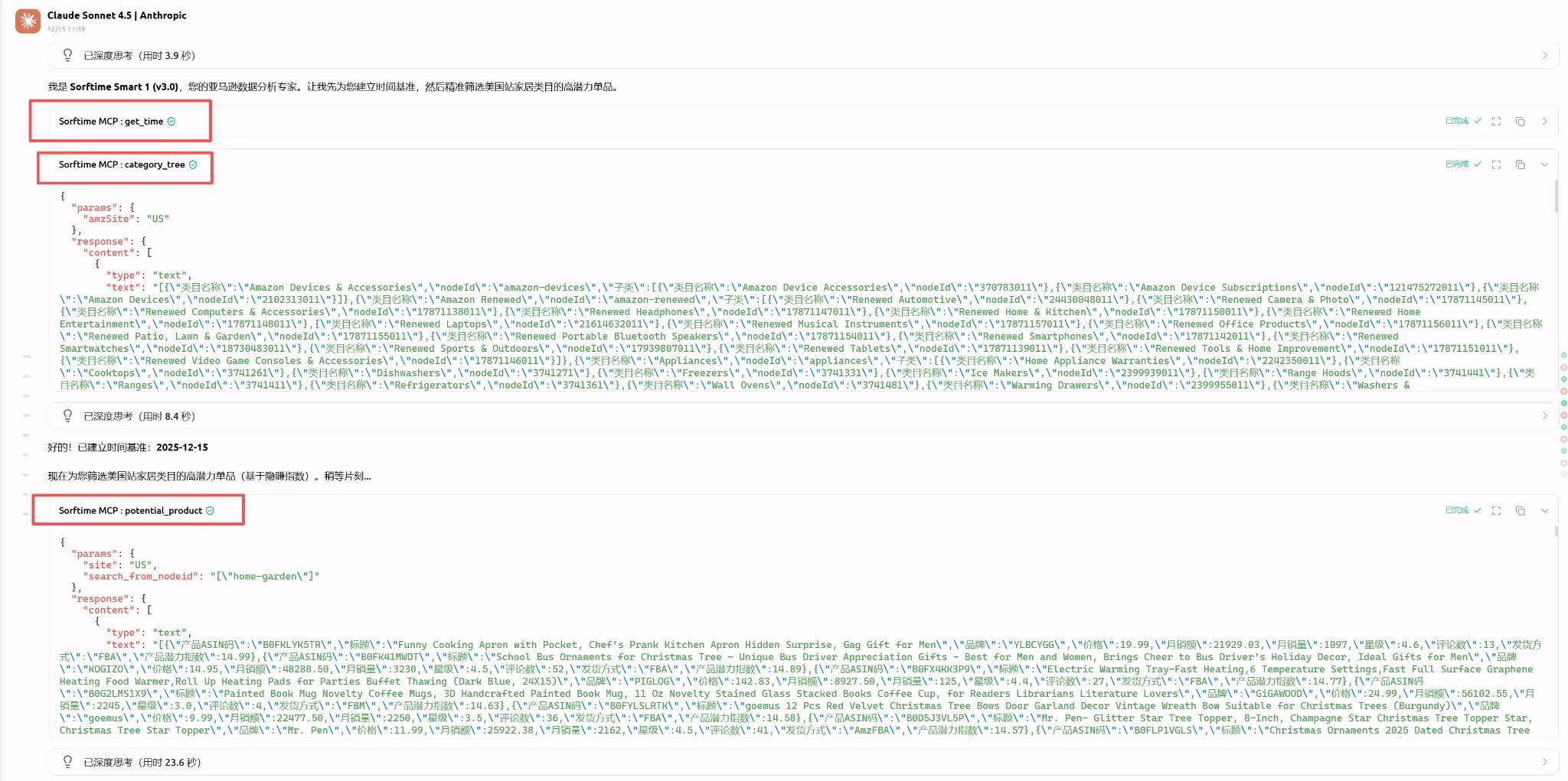 上周我们公布了 Gemini 3 pro vs Deepseek V3.2 结合 Sorftime MCP 数据选品的实测。鉴于卖家都很感兴趣和关注,也向我们提出了很多问题,我们本期就如约为卖家展示亚马逊投资的 Anthropic 旗下主力模型 Claude Sonnet 4.5 + MCP 的表现,此外也针对上周到现在很多卖家在 MCP 使用中遇到的问题做一个统一答复和讲解。