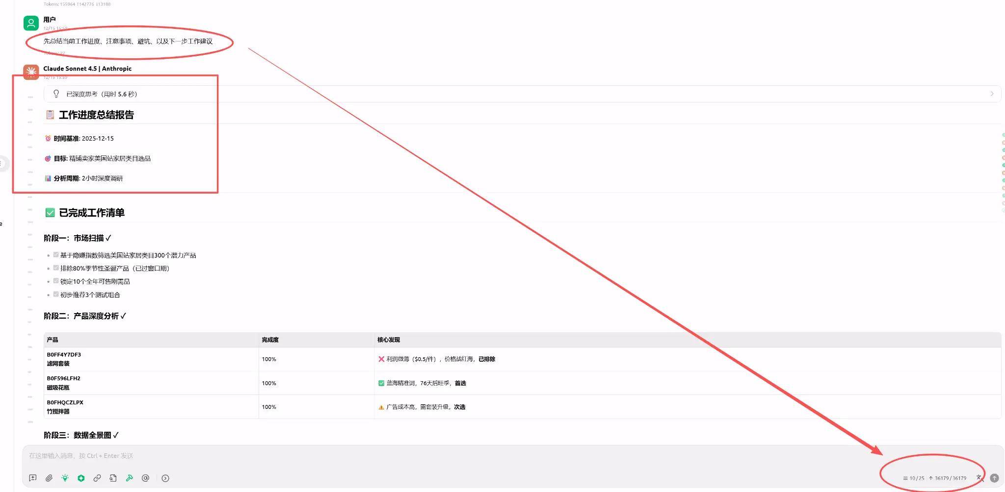 我们看下多轮工具调用 Claude Sonnet 4.5 的深度思考过程,卖家在实际使用中,也可以经常查看这个以检查模型的思考逻辑,同时对自身的思路也是扩展和学习。