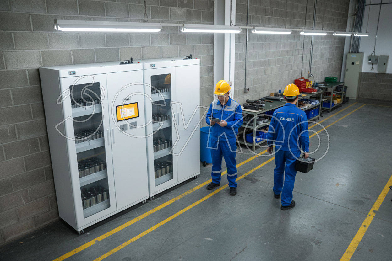 斯科CK-GGT1智能称重柜在精密工具存放环境中展示,柜体结实耐用
