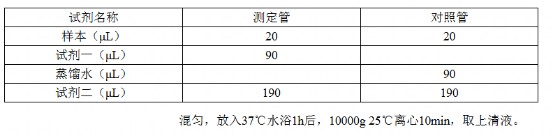 组织:按照组织质量(g):提取液体积(mL)为1:5~10的比例(建议称取约0.1g组织,加入1mL提取液),进行冰浴匀浆。8000g 4℃离心10min,取上清,置冰上待测。