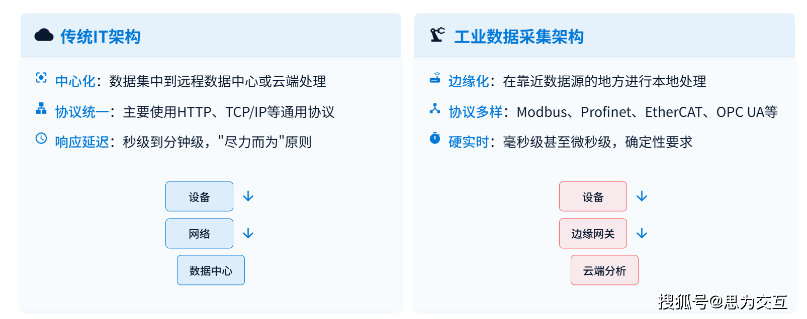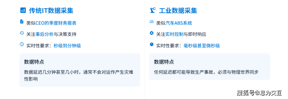 这就是两个世界的根本区别:传统IT系统处理的是“信息流”,关注业务流程和事后分析;而工业数据采集系统(或称OT,操作技术)处理的是“物理流”,直接与物理世界的机器设备交互,并对其进行实时控制 。一个是对过去的总结,一个是对当下的掌控。