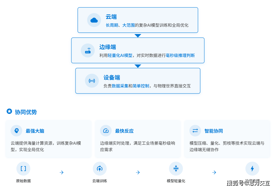 现代智能制造的趋势,是构建“云-边-端”协同的智能架构。在这个架构中,云端负责长周期、大范围的复杂AI模型训练和全局优化 。例如,通过分析数月的生产数据,训练出一个预测设备故障的复杂模型。