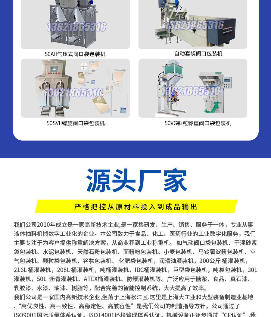 本公司销售和生产自动化小型包装机、预拌砂浆包装机、砂浆包装机、干粉腻子包装机、铸造材料包装机、等。我们以市场需求为导向,持续进行科技创新和管理创新,为客户提供全方位的解决方案,并与客户建立长期合作关系。