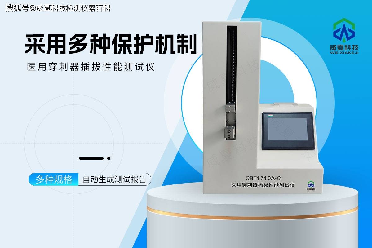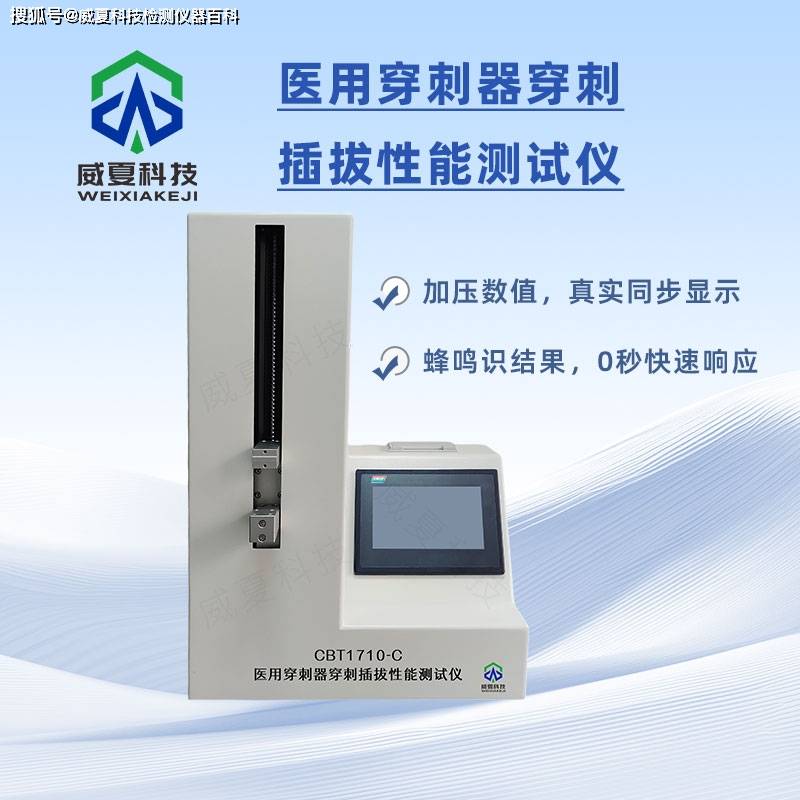 医用穿刺器穿刺插拔性能测试仪CBT1710-C是由威夏电子科技(杭州)有限公司研发的智能化检测设备,专用于评估医用穿刺器(如腹腔镜穿刺器、注射针等)的插拔性能及安全可靠性,符合 YY/T 1710-2020《一次性使用腹部穿刺器》 等国家标准。以下是威夏科技从技术参数、核心功能、适用场景及优势等方面进行详细解析: