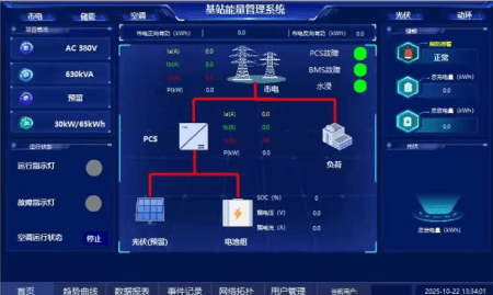 ACCU协调控制器融合了市电、储能、光伏、空调及环境的多维数据,实现基站光储一体机的全景监视。