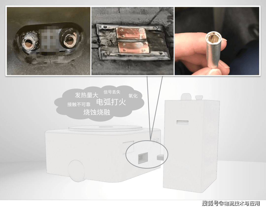 移动机器人和穿梭车需要高频率充电来及时补能,因此这些设备的充电连接器就成为潜在的风险点。全球知名工商业保险公司FM Global在其财产防损数据册《8-34 Protection for Automatic Storage and Retrieval Systems》也重点指出,AS/RS系统的安全防护需要特别注意避免充电接触点出现电弧发热等风险。
