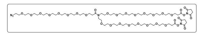 中文名称:N-(叠氮-八聚乙二醇-羧酰)-N-双(八聚乙二醇-琥珀酰亚胺酯)