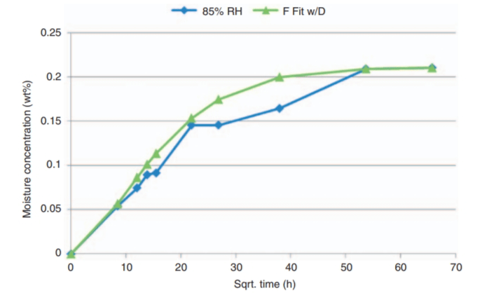 图8:绝缘材料试样在85%相对湿度下的菲克曲线拟合。
