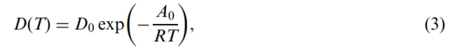 其中,D0为指前因子,A0为扩散活化能,R为通用气体常数,T为以绝对温标测量的温度。