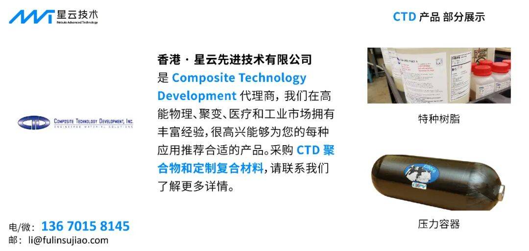 香港星云先进技术有限公司(NAT)是Composite Technology Development(CTD)代理商,采购(高性能树脂(环氧树脂、氰酸酯等)、尖端复合材料、压力容器)请立即联系我们。